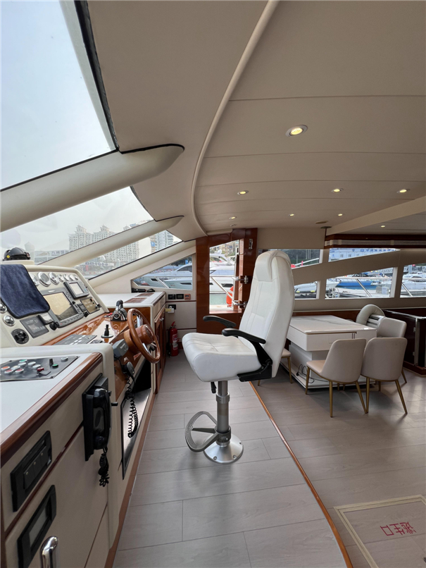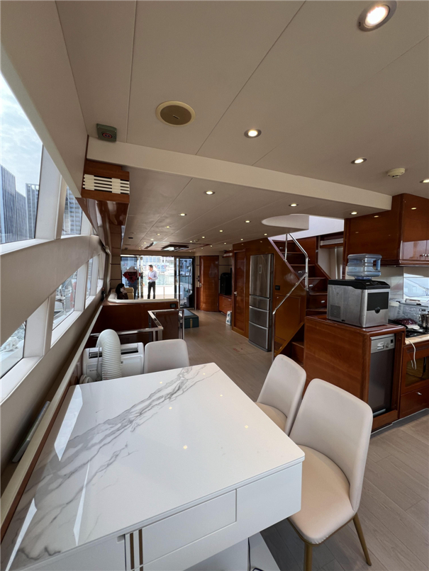 船长27米,两客厅五房五卫,配备JBL顶级KTV音响,BOSE家庭影院,自动麻将机,飞桥烧烤炉,娱乐与档次满分,现为目前珠海最大的游艇。