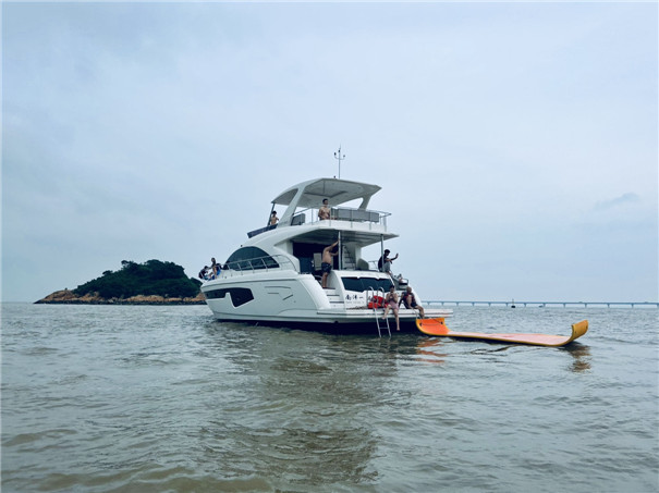 3小时A行程:航海文化中心游艇码头—远眺澳门,人工岛,九洲岛→经过港珠澳大桥个桥洞→海上看日月贝,然后在附近海域抛锚娱乐,体检钓鱼→返回码头(约1个小时观光,2个小时锚泊,体检钓鱼或娱乐)